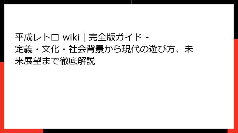 平成レトロ wikiを調べることで、これらの要素がどのように繋がっているかがわかります。