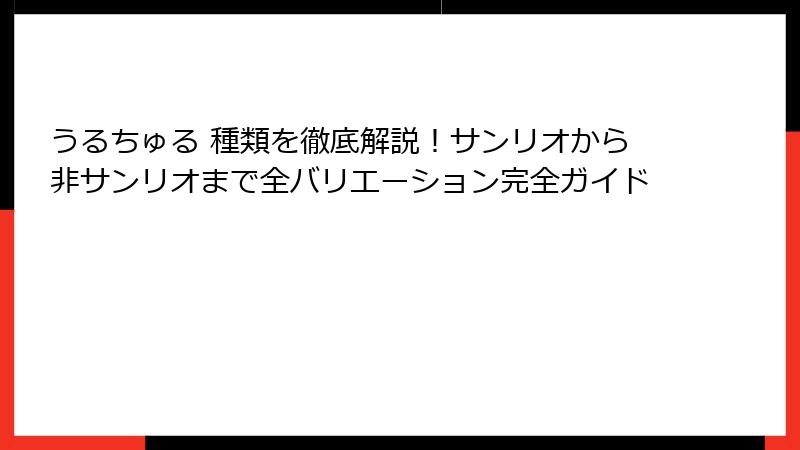 全体像を把握することで、検索キーワード「うるちゅる 種類」の答えが明確になります。