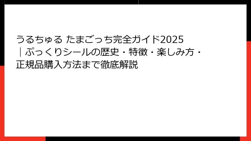 うるちゅる たまごっち完全ガイド2025|ぷっくりシールの歴史・特徴・楽しみ方・正規品購入方法まで徹底解説