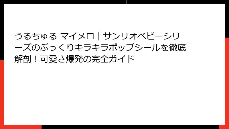今日は、最近話題沸騰中の「うるちゅる マイメロ」について、徹底的に掘り下げていきたいと思います。