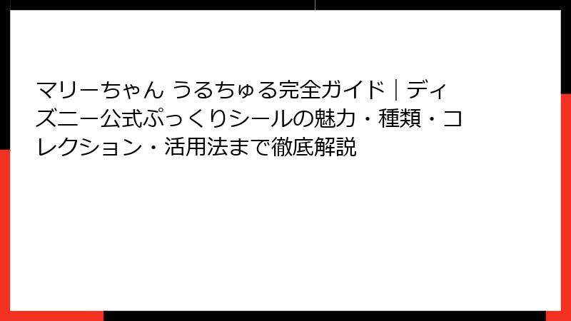 - マリーちゃん うるちゅるの魅力に迫る:ディズニーキャラクターの可愛らしさと立体シールの世界