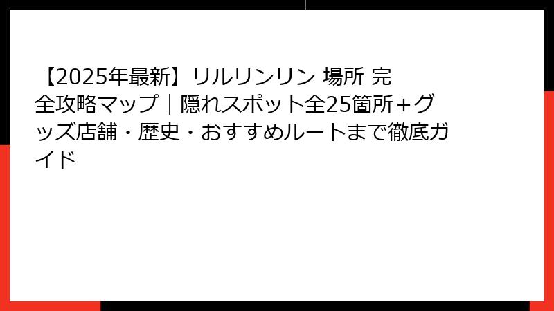 リルリンリン 場所のすべてを網羅しました。