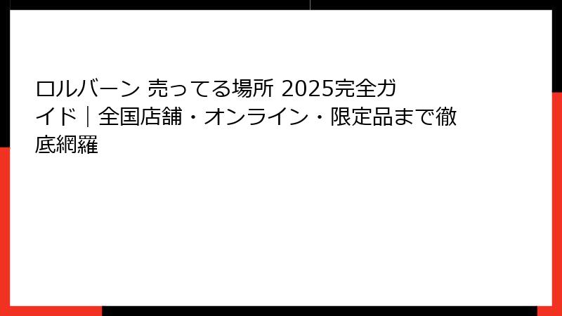 - ロルバーン購入のまとめとおすすめTips!賢く手に入れる方法