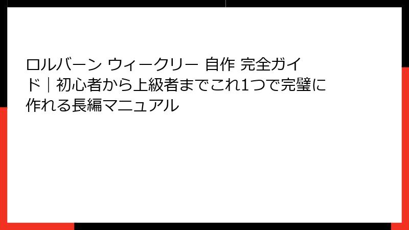 本記事では、ロルバーン ウィークリーの基本的な概要から始め、自作のメリットを詳しく掘り下げていきます。