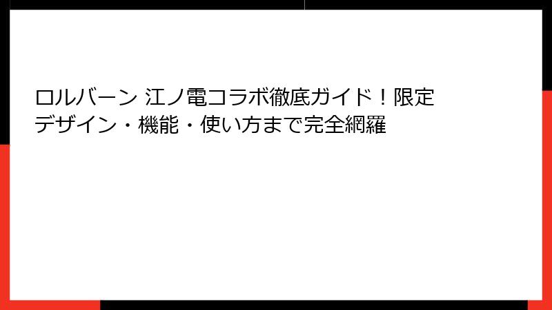 ロルバーン 江ノ電コラボの魅力は、機能とデザインの融合にあり、購入ガイドに従えば簡単に手に入ります。