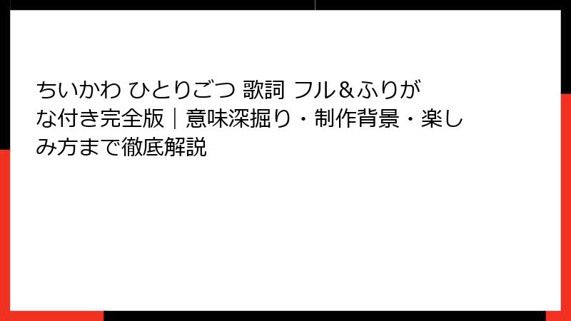 ちいかわ ひとりごつ 歌詞を検索している皆さんにとって、この段落が深い理解の入り口になれば幸いです。