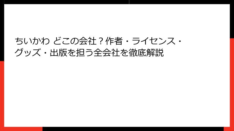 - ちいかわをビジネスで支える会社一覧:ライセンス、グッズ、出版の役割を詳解