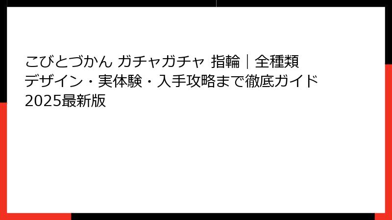この記事では、こびとづかんガチャガチャ指輪の歴史から始まり、種類の詳細、実際のレビュー、入手方法、そして未来の展望までを徹底的に掘り下げます。