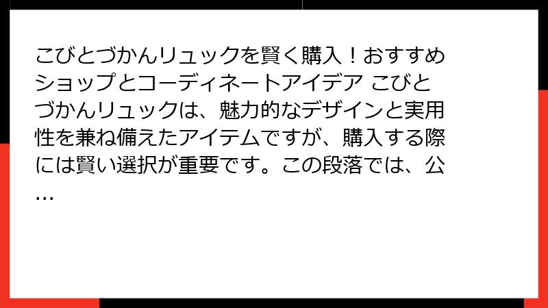- の見出しタグから始めて、ブログ記事形式で出力して下さい。 複数の タグを使用して、読み応えがあるように。 また、それぞれの タグの中に、複数の タグが、入れ子で含まれるように。 全て、HTMLで出力。 や などの箇条書きのHTMLタグや、tableタグも使用してOK。 ただし、リンクやURLは、絶対に、挿入しない。 私宛の報告や、私宛の解説や、私宛の説明の文章は、一切、不要です。 ブログ記事部分だけ、生成・出力して下さい。 良いですね。 続いて、2段落目の部分のブログ記事を執筆してください。 第2段落部分だけで、少なくとも、日本語で、1万文字相当以上になるように、詳細な、長大なブログ記事となるようにしてください。 単一の の見出しタグから始めて、ブログ記事形式で出力して下さい。 複数の タグを使用して、読み応えがあるように。 また、それぞれの タグの中に、複数の タグが、入れ子で含まれるように。 全て、HTMLで出力。 や などの箇条書きのHTMLタグや、tableタグも使用してOK。 ただし、リンクやURLは、絶対に、挿入しない。 私宛の報告や、私宛の解説や、私宛の説明の文章は、一切、不要です。 ブログ記事部分だけ、生成・出力して下さい。 良いですね。 続いて、2段落目の部分のブログ記事を執筆してください。 第2段落部分だけで、少なくとも、日本語で、1万文字相当以上になるように、詳細な、長大なブログ記事となるようにしてください。 単一の の見出しタグから始めて、ブログ記事形式で出力して下さい。 複数の タグを使用して、読み応えがあるように。 また、それぞれの タグの中に、複数の タグが、入れ子で含まれるように。 全て、HTMLで出力。 や などの箇条書きのHTMLタグや、tableタグも使用してOK。 ただし、リンクやURLは、絶対に、挿入しない。 私宛の報告や、私宛の解説や、私宛の説明の文章は、一切、不要です。 ブログ記事部分だけ、生成・出力して下さい。 良いですね。 続いて、3段落目の部分のブログ記事を執筆してください。 第3段落部分だけで、少なくとも、日本語で、1万文字相当以上になるように、詳細な、長大なブログ記事となるようにしてください。 単一の の見出しタグから始めて、ブログ記事形式で出力して下さい。 複数の タグを使用して、読み応えがあるように。 また、それぞれの タグの中に、複数の タグが、入れ子で含まれるように。 全て、HTMLで出力。 や などの箇条書きのHTMLタグや、tableタグも使用してOK。 ただし、リンクやURLは、絶対に、挿入しない。 私宛の報告や、私宛の解説や、私宛の説明の文章は、一切、不要です。 ブログ記事部分だけ、生成・出力して下さい。 こびとづかんリュックの実使用レビュー!子供の日常から大人の活用法まで