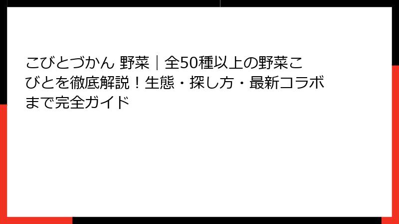 記事まとめ: 導入から生態、コラボまで野菜こびとの世界を網羅。