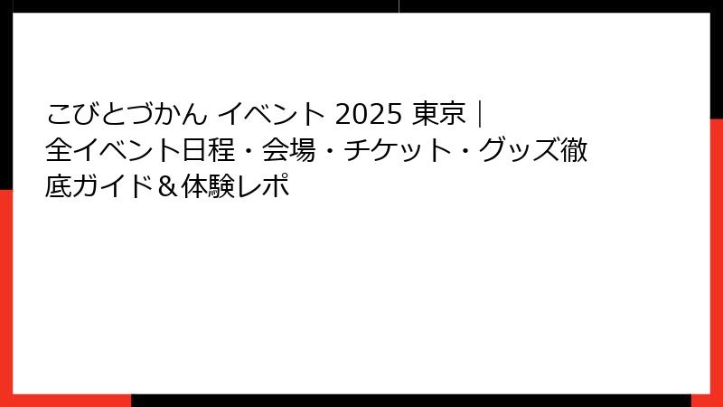 - こびとづかんイベント2025東京を楽しむためのTipsとまとめ