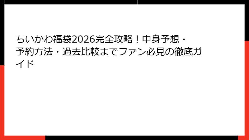 この記事では、特に2026年のちいかわ福袋に焦点を当てて、その魅力や期待される内容を徹底的に掘り下げていきます。
