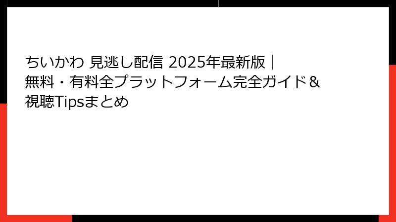- 各プラットフォームでのちいかわ見逃し配信の詳細な視聴ガイド
