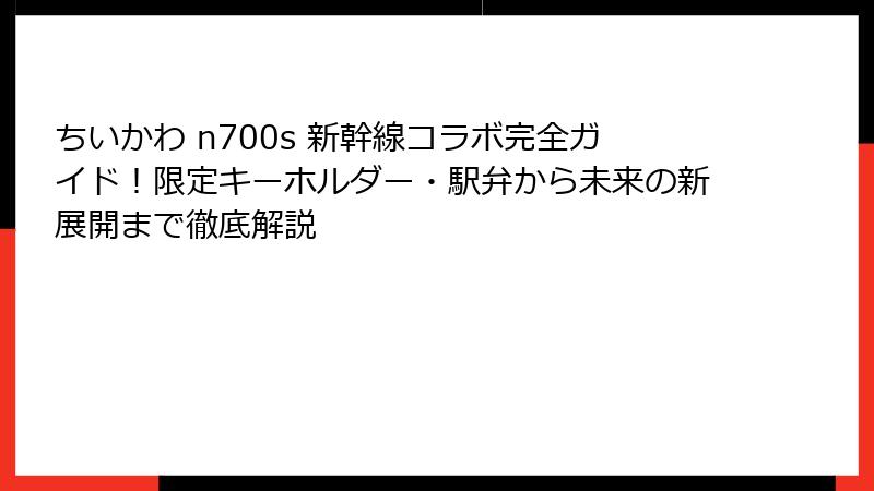 みなさん、こんにちは! 今日は、かわいいキャラクター「ちいかわ」と高速鉄道の象徴であるN700S新幹線がコラボした話題について、詳しくお話ししていきたいと思います。