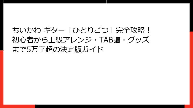 - 上級者向けアレンジ!『ちいかわ ギター』のTAB譜と高度テクニック