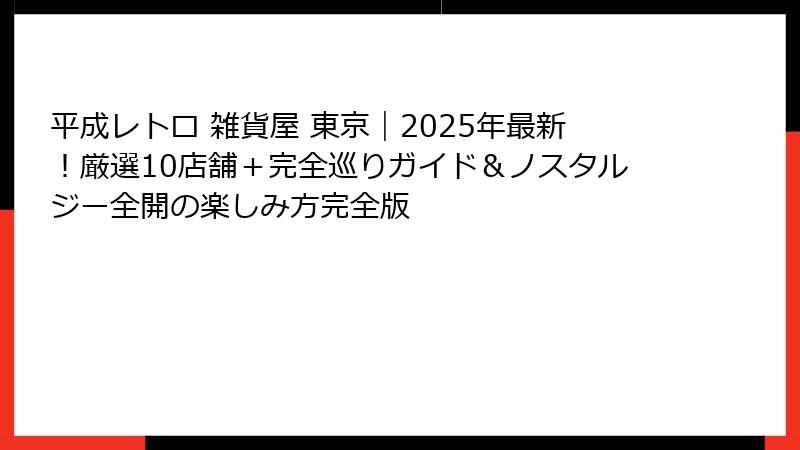 - 東京でおすすめの平成レトロ雑貨屋10選:詳細ガイドとアクセス方法