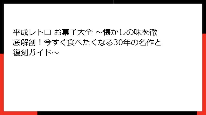 - 平成レトロお菓子の魅力に浸ろう!懐かしの時代を振り返る導入編