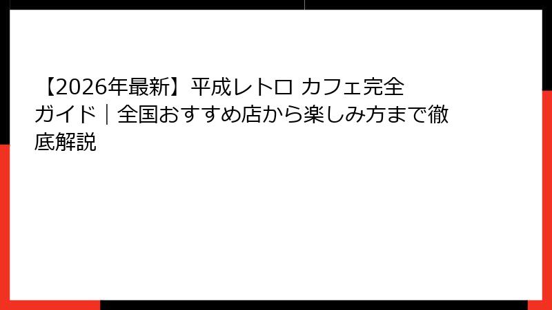 - 必訪!全国の平成レトロ カフェおすすめ5選:RETOPOから隠れ家まで