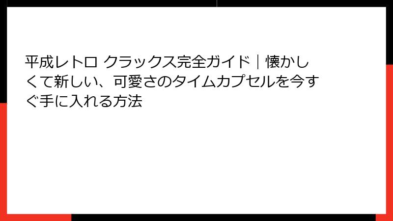この記事では、平成レトロ クラックスの魅力を深く掘り下げ、なぜ今でも私たちの心を掴むのかを詳しく探っていきます。