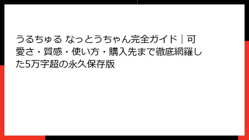 皆さん、こんにちは! 今日は、最近SNSやオンラインショップで話題沸騰中の可愛いキャラクター「うるちゅる なっとうちゃん」について、詳しくお話ししていきたいと思います。
