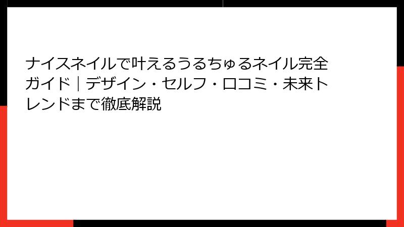 ここでは、ナイスネイルの特徴を詳しく解説し、なぜうるちゅるネイルがここで輝くのかを探ります。