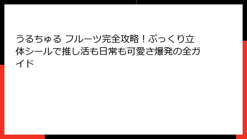 この記事を通じて、あなたも「うるちゅる フルーツ」のファンになること間違いなしです!