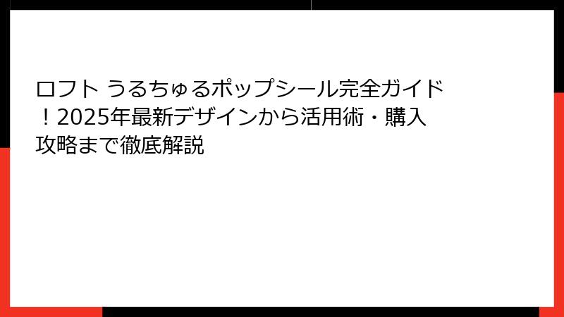 ロフト うるちゅるポップシールとは?人気の秘密を徹底解剖