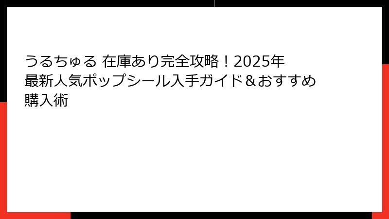 - うるちゅるポップシール在庫ありの購入先:オンラインショップと実店舗ガイド