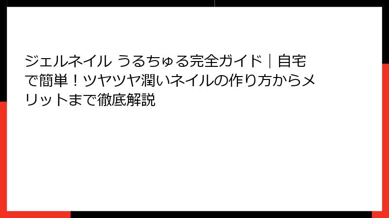 ジェルネイル うるちゅる完全ガイド|自宅で簡単!ツヤツヤ潤いネイルの作り方からメリットまで徹底解説