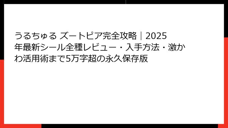 この記事では、そんなうるちゅる ズートピアの魅力を徹底的に解剖していきます。