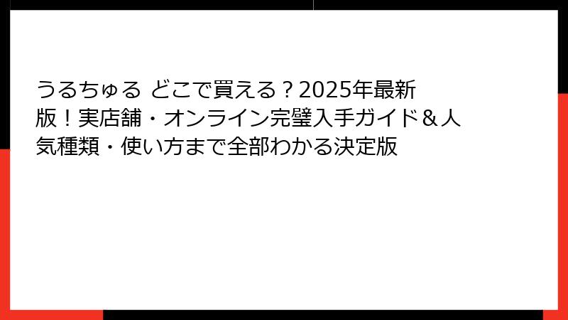 多くの人が「うるちゅる どこで入手できるのか」と検索するのは、この人気の波に乗りたいという欲求からです。