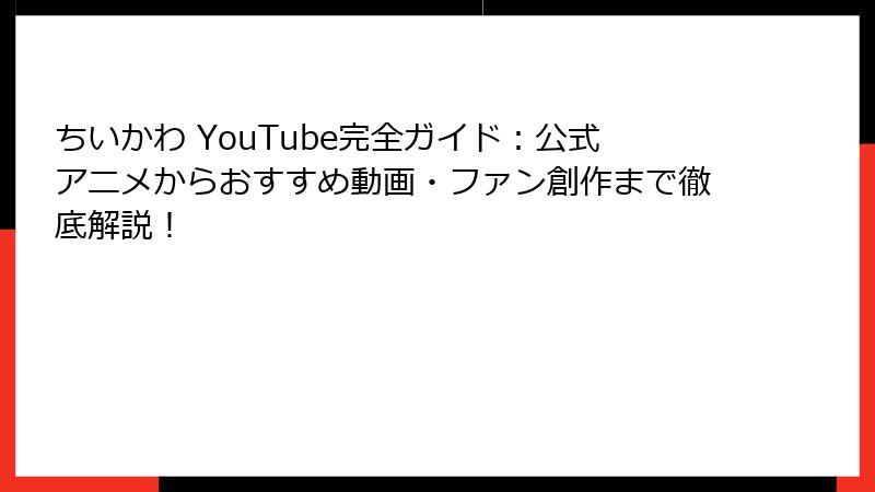 - ちいかわYouTubeの楽しみ方まとめ:今すぐ視聴を始めよう!