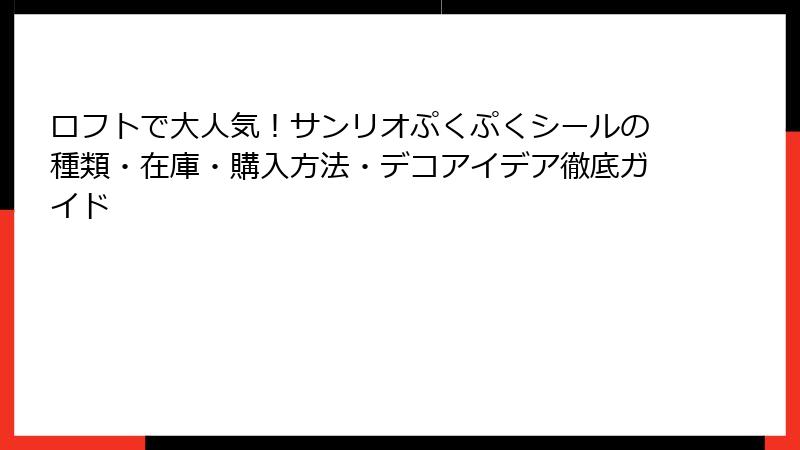 - まとめ:ロフトでサンリオぷくぷくシールを手に入れて、毎日の可愛さをアップデートしよう!
