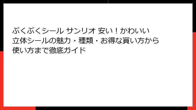 この導入部では、サンリオの歴史的な背景から始まり、ぷくぷくシールの定義、市場での価格帯、そしておすすめの活用シーンまでをカバーします。
