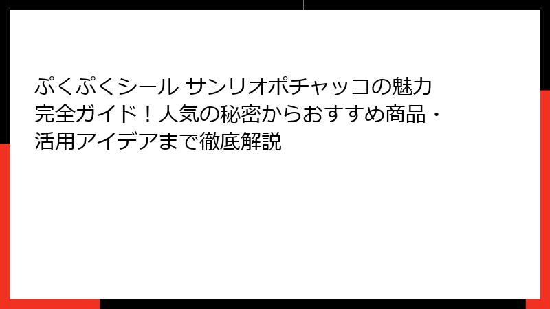 この記事では、まず導入部として、ぷくぷくシール サンリオポチャッコの全体像を詳しく紹介し、その魅力の核心に迫ります。