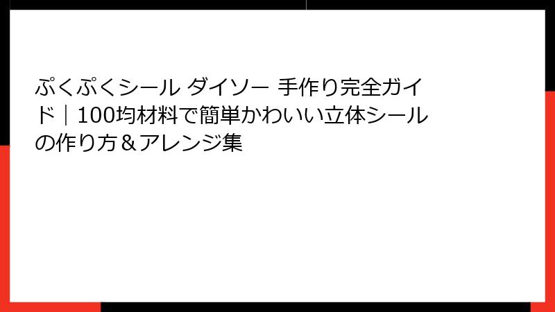 ぷくぷくシール ダイソー 手作りは、100円均一の材料でプロ並みのクオリティを実現可能です。