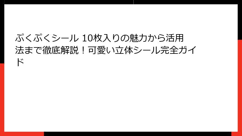 ぜひぷくぷくシール 10枚入りを試してみてください!このガイドで、お得に手に入れ、日常を彩りましょう。
