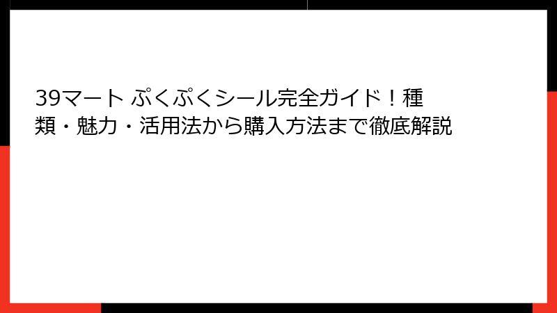 この記事では、39マートの成り立ちから、ぷくぷくシールの人気の秘密まで、じっくりと掘り下げていきます。