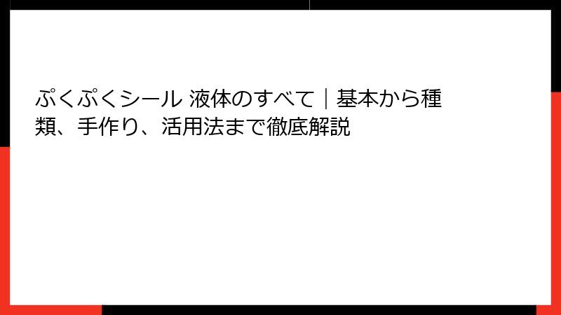 以下では、ぷくぷくシール 液体の基礎知識を徹底的に解説し、なぜこれほどまでに人気があるのかを科学的な視点も交えて探っていきましょう。