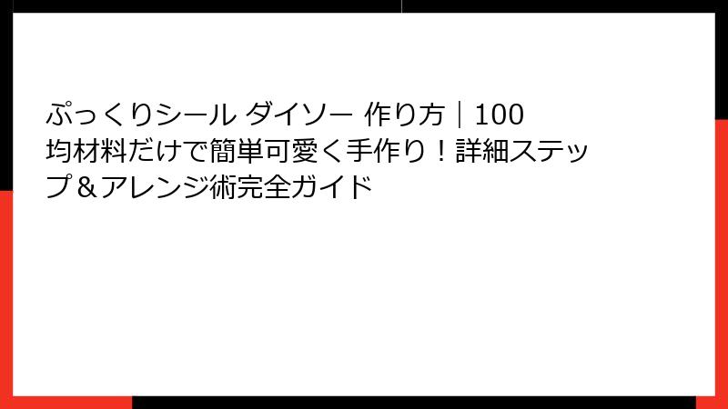 ぷっくりシール ダイソー 作り方|100均材料だけで簡単可愛く手作り!詳細ステップ&アレンジ術完全ガイド