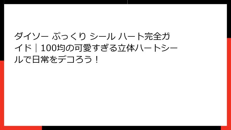 - ダイソーのぷっくりハートシールとは?100均で手に入る可愛いアイテムの魅力に迫る