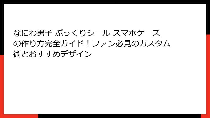 この記事では、なにわ男子のぷっくりシールを使ったスマホケースのカスタムについて、ファン必見の魅力を詳しく掘り下げていきます。