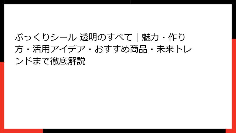 ぷっくりシール 透明のすべて|魅力・作り方・活用アイデア・おすすめ商品・未来トレンドまで徹底解説