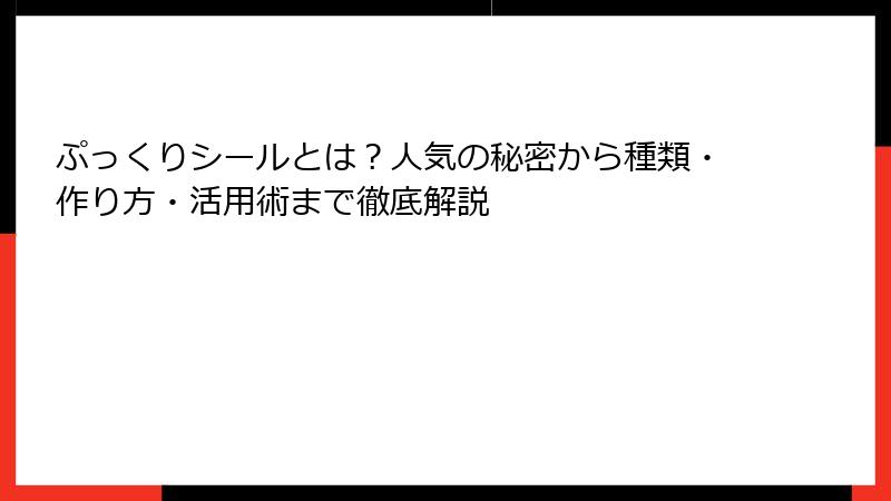 の見出しタグから始めて、ブログ記事形式で出力して下さい。 複数の タグを使用して、読み応えがあるように。 また、それぞれの タグの中に、複数の タグが、入れ子で含まれるように。 全て、HTMLで出力。 や などの箇条書きのHTMLタグや、tableタグも使用してOK。 ただし、リンクやURLは、絶対に、挿入しない。 私宛の報告や、私宛の解説や、私宛の説明の文章は、一切、不要です。 ブログ記事部分だけ、生成・出力して下さい。 ぷっくりシールの種類と人気ブランドの紹介