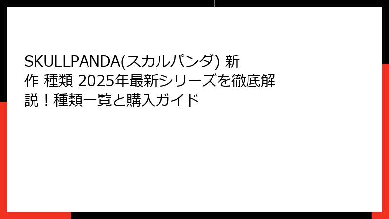 1. SKULLPANDA(スカルパンダ)とは?2025年最新新作の種類を徹底解説!