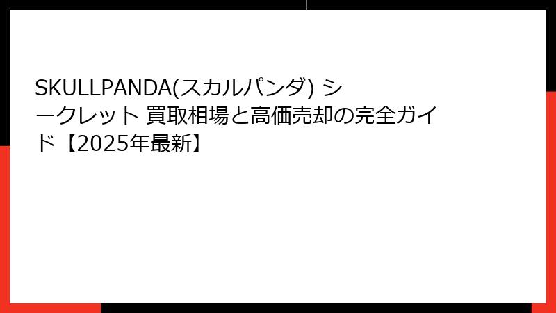これらの要素を深く理解することで、SKULLPANDA シークレット 買取の戦略が立てやすくなります。