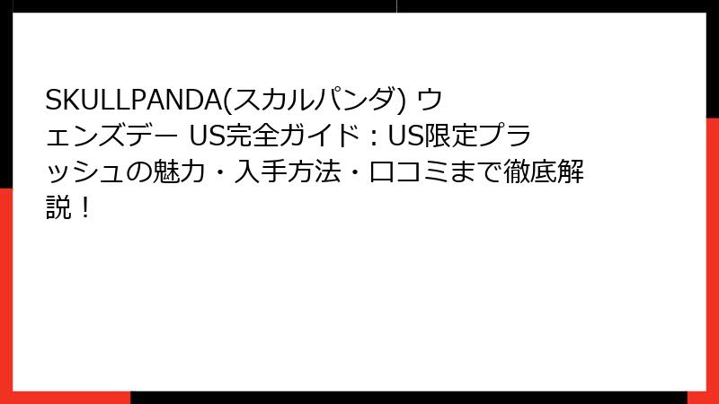 この導入部だけでも、SKULLPANDA(スカルパンダ) ウェンズデー USの魅力が伝わったでしょうか?さらに深く知りたい方は、続きをお読みください。