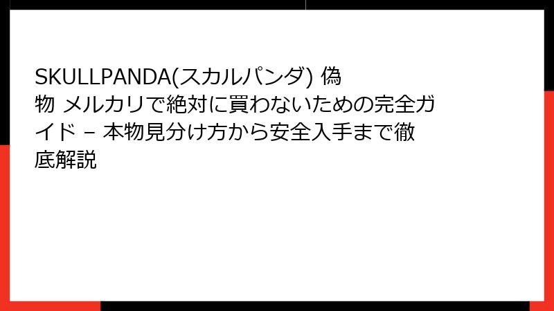 - メルカリでSKULLPANDA(スカルパンダ)偽物を買わないための実践ガイド