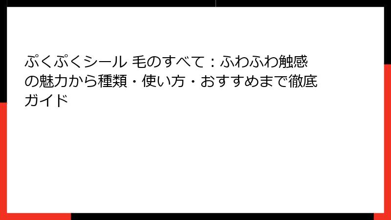 この記事では、ぷくぷくシール 毛の基本的な概要から始め、その魅力や歴史、用途などを詳しく掘り下げていきます。