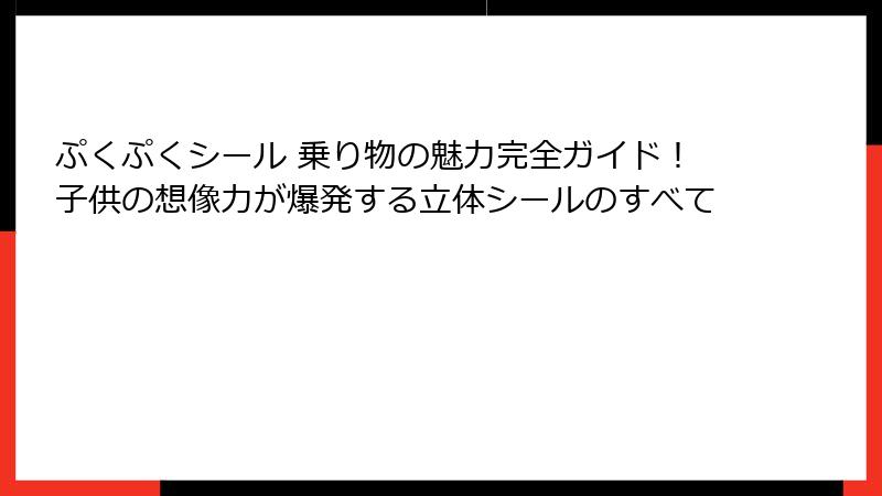 この導入部では、ぷくぷくシール 乗り物の全体像を把握し、次の詳細な解説へとつなげていきます。